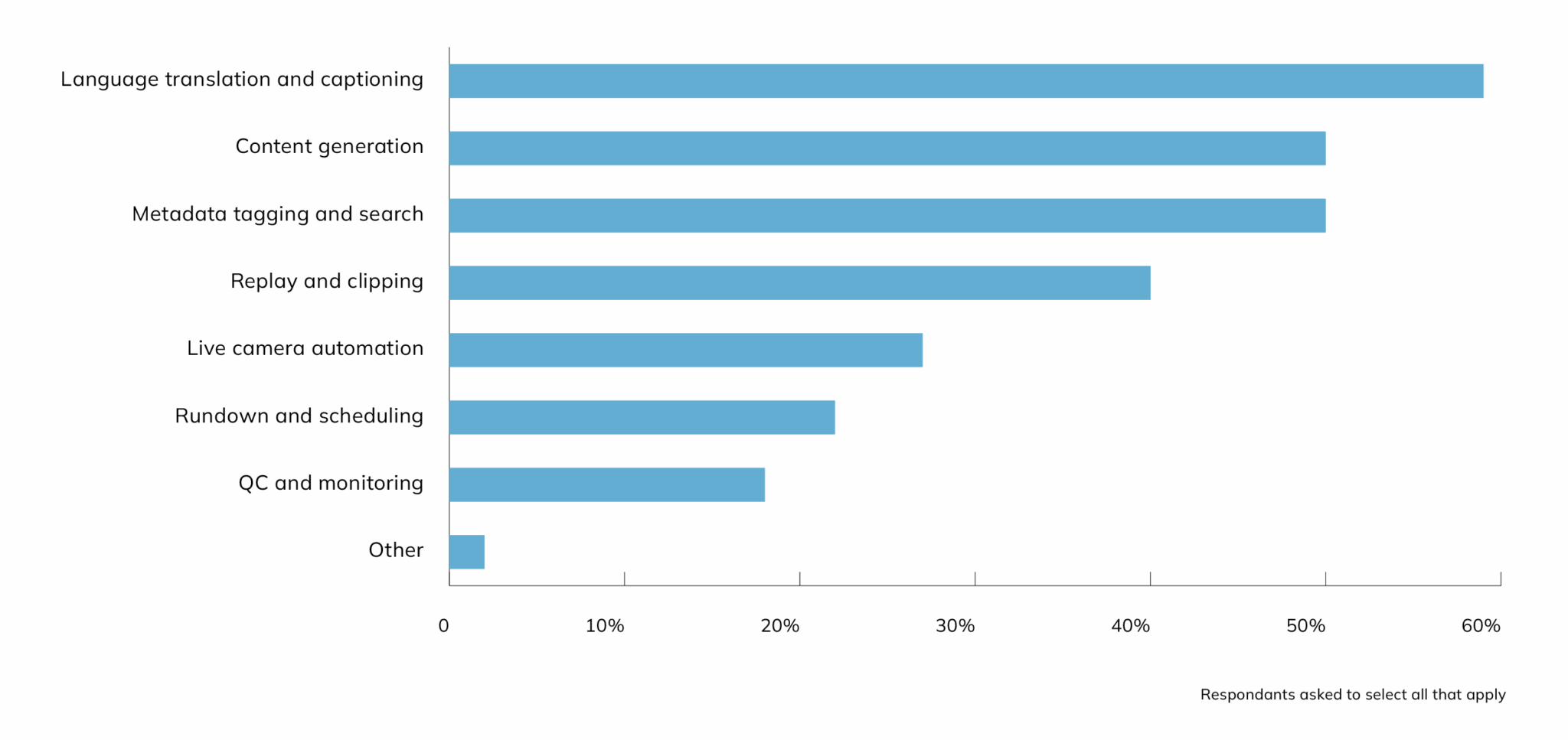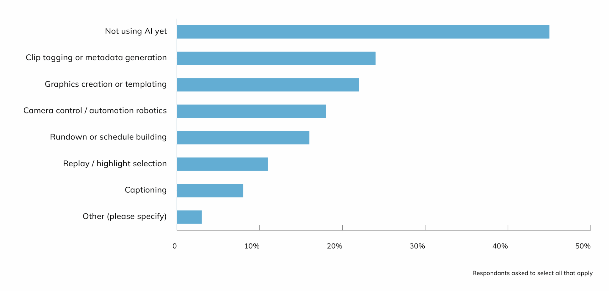 Looking ahead, respondents were also asked: “Which areas of live production do you expect will most benefit from AI?”