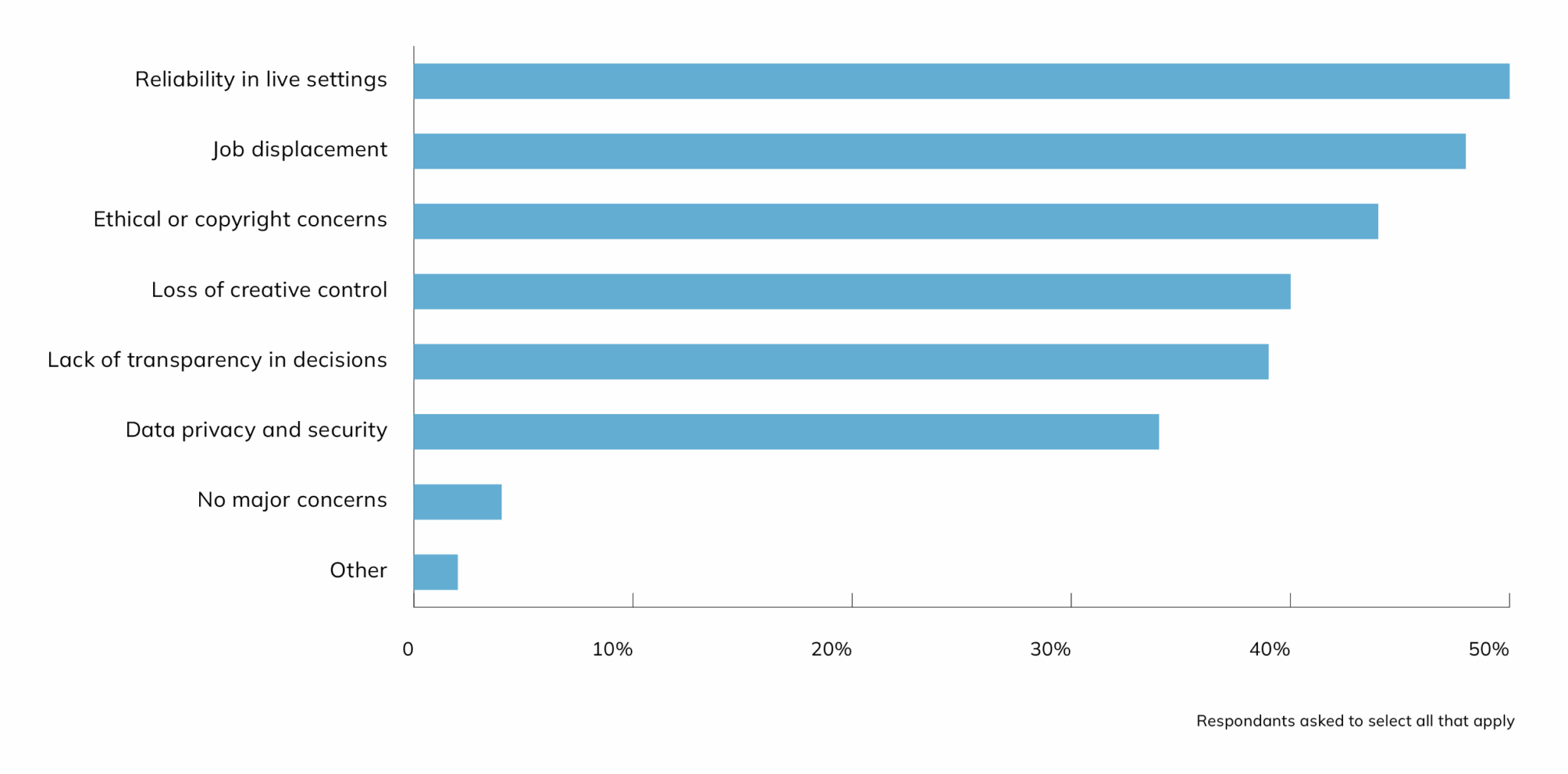 Alongside potential gains, we asked respondents: “What concerns you most about increased AI use in broadcast production?”