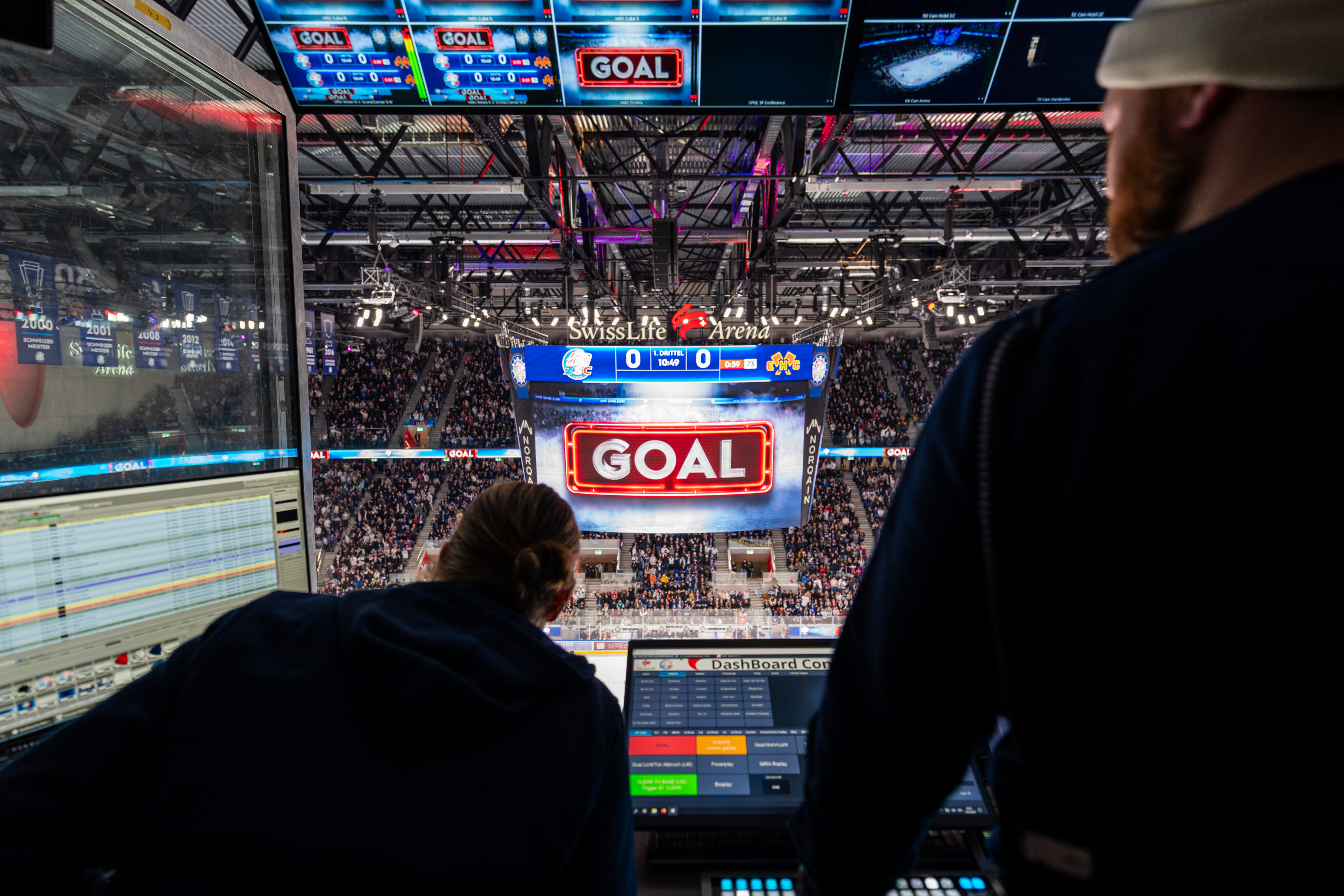 In the front row, the Technical Director works the production switcher—the central hub for everything happening in the show. Beside them sits the director and producer, calling the shots. Behind them, replay operators cut highlights and manage live replay during the event. CG operators update stats and manage graphics, connected to live data feeds that automatically populate on-screen information. And uniquely in venue production, dedicated operators manage LED ribbons and sponsorship content, running through sold activations at precisely the right moments.