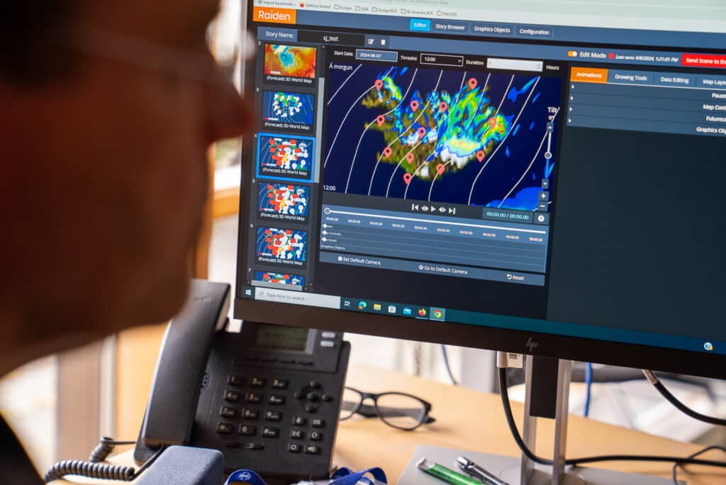 Accurate weather information is crucial in Iceland, where the weather can change swiftly and dramatically. RÚV’s previous weather system was isolated from the rest of their newsroom workflow and not as flexible as they wanted. The need for a more integrated and creative solution was evident, especially given their role in civil protection during natural disasters.